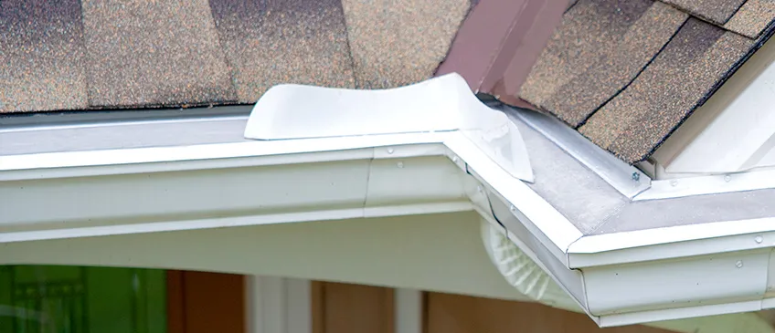 Gutter splash guards help direct the flow of water, particularly in roof valleys where a large amount of water can come together. This helps prevent water from splashing over the gutters.